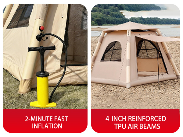 • 【Fast Inflatable Setup】 Simply  inflate to set up—no poles or tools required. The tent stands automatically in minutes